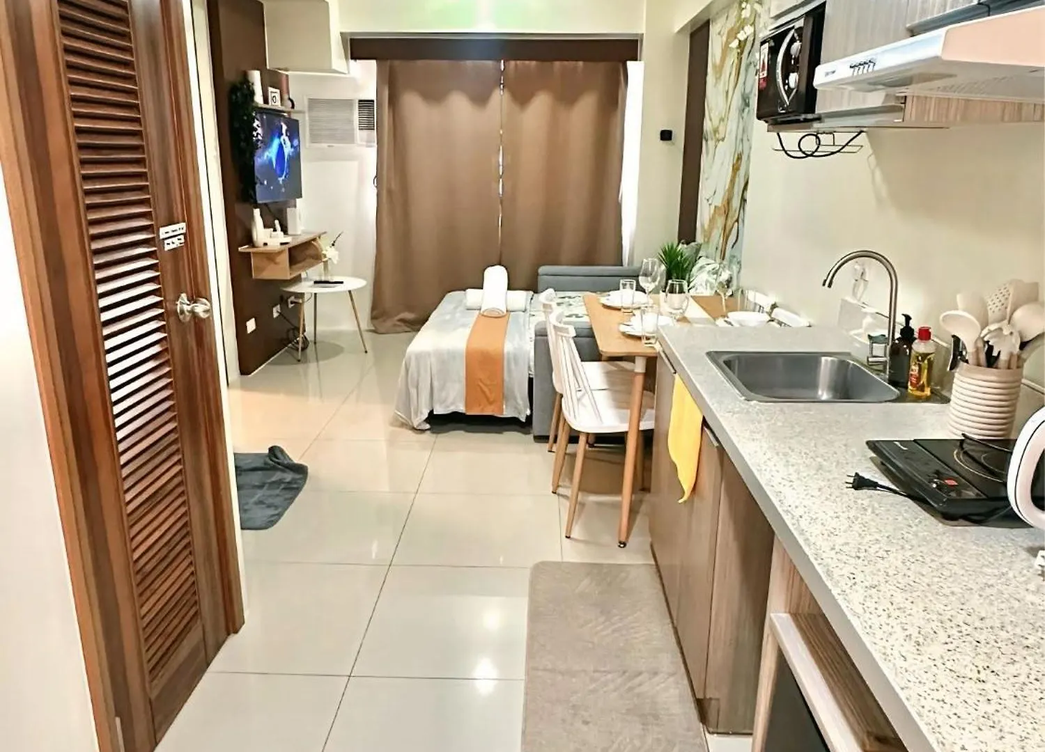 El apartamento está equipado con una cocina completa. El establecimiento está situado a 20 minutos en coche del aeropuerto Internacional de Mactan-Cebu. Ofrece una piscina privada para que los huéspedes se relajen.